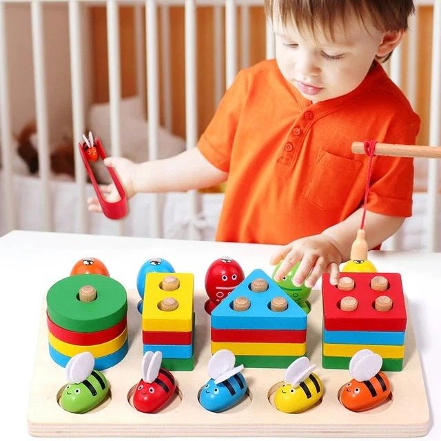 The 3 in 1 Wooden Toy, featuring a Column game, Fishing activity, and Bee Clipping challenge, holds immense significance in early childhood development. Beyond mere entertainment, this multifaceted toy serves as a versatile educational tool. Firstly, the Column game promotes cognitive skills such as problem-solving and spatial reasoning as children strategize to stack the columns. Secondly, the Fishing activity enhances hand-eye coordination and fine motor skills as kids maneuver the magnetic fishing rod to catch the colorful fish. Lastly, the Bee Clipping challenge fosters concentration and dexterity as little ones use tweezers to clip the buzzing bees. With its varied activities, the 3 in 1 Wooden Toy not only entertains but also cultivates essential skills crucial for a child’s growth and learning